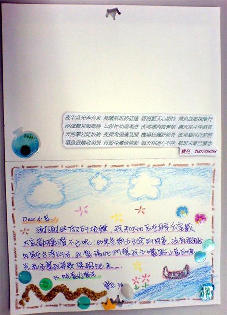 拜託你有空的時候,幫我把五艘小船放進信封裡,請郵差伯伯幫我帶回台北…