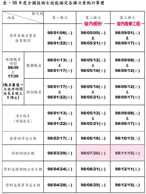 ★ 98 年度全國技術士技能檢定各梯次重點行事曆