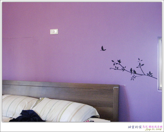 因為主臥室用神秘的藍紫色,已經相當鮮豔,所以只給它延伸出樹枝&小鳥兒